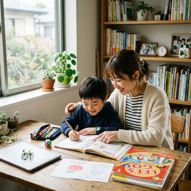 子供が学校で新しい単語を習ったら、家庭でもその単語を使ってみてください。「今日のおやつはappleだよ」「この色は英語でなんて言うんだっけ?」。学校の学びと日常生活をつなげることで、記憶の定着率が上がります。